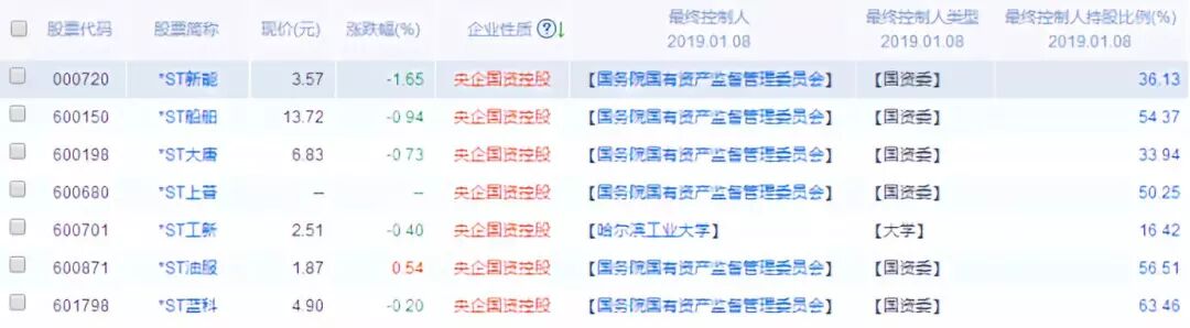 目前两市当中带帽的股票有86只,披星戴帽的股票有58只,而这58只披星戴帽的股票当中央企国企背景的总共有7只,其中有6只最终控制人是国务院国有资产监督管理委员会,这个跟长油一样,另外一只的最终控制人是哈尔滨工业大学。