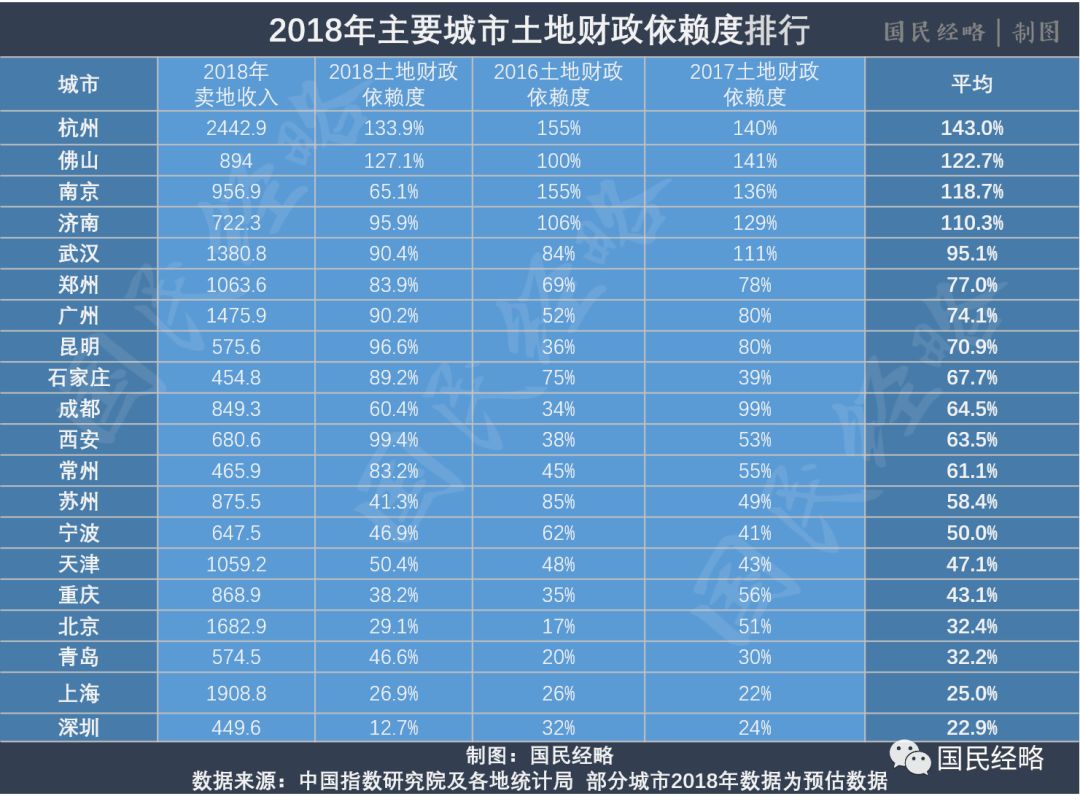 2018年,哪些城市卖地收入最高?哪些城市土地财政依赖度最高?
