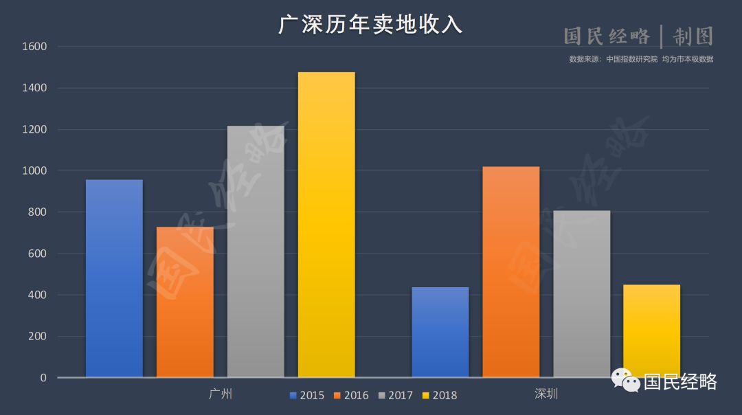 卖地收入仅为杭州的1/5,约为广州的1/3,这并未影响深圳的财政收入指出。
