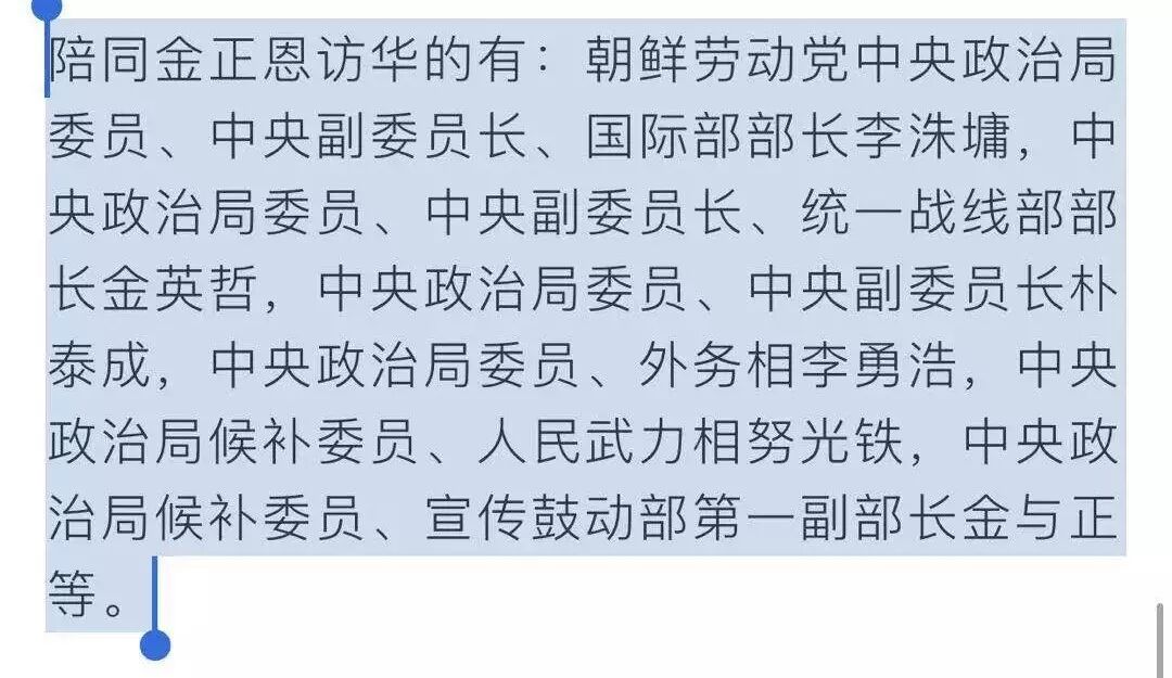 值得一提的是,这次朝鲜来访名单,阵容可谓豪华,党政军高层全部到位,这些人都是决定朝鲜之后“顶层设计”的关键人物。搞外交的,搞经济的,军方实权人物,这么强的阵容来中国访问,既是来看看中国的发展,也说明这次来访中国,朝鲜是想做一篇大文章。