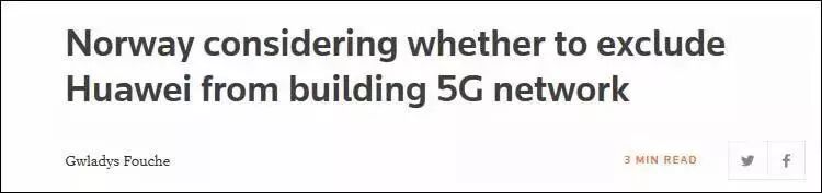 报道称,2009年,挪威国有运营商挪威电信(Telenor)与华为签订了第一份重要合同,为后者的全球扩张铺平了道路。挪威电信在欧洲和亚洲等地八个国家拥有1.73亿用户。目前,挪威电信和其竞争对手特利亚电信(Telia)在挪威使用华为生产的4G设备,并已经在实验性5G网络中测试华为的设备。