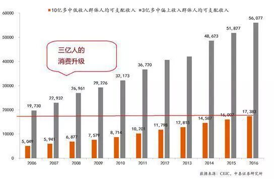 考虑到购买力平价因素,国内城镇中等偏上收入以上的3.16亿人的收入水平已接近韩国的平均水平,但人口规模接近美国。这部分人口在2017年之前,主导了中国的消费升级,但2018年以来,消费增速受收入影响,已经大幅下降。