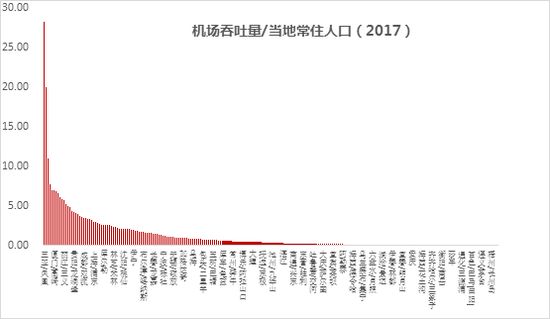 80%的国内机场,只贡献不足10%的乘客吞吐量,那些处于尾部的小机场,年乘客数量接近零。
