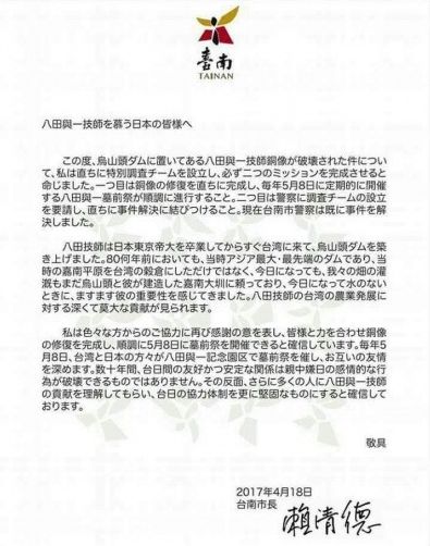 同样也是17年,赖清德因为一座日本人的铜像被损毁大为光火,像自己祖坟被挖了似的责令有关部门迅速查办,并还亲自用日文向日本方面汇报。而另一方面,当年蒋介石的铜像被斩首却不闻不问,甚至还有网友猜测赖清德肯定笑得合不拢嘴。媚日,媚到这份儿上,也是独一份了。