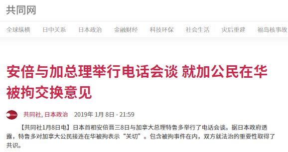 很有意思的地方就在于,这篇报道提到,特鲁多在与安倍通电话时,表示对加拿大公民接连在华被拘表示“关切”。