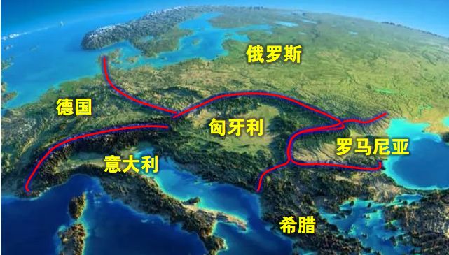 我们先来看看欧洲的地形图:如果按照人类历史发展和地理环境划分来看,欧洲主体大陆应该划分为6个国家。