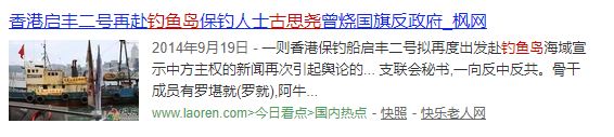 2012年8月15日,港籍人士古思尧纠集8人,打着“中国香港保钓行动委员会”的旗帜,乘坐启丰二号,用暴力手段突破日本海事船的阻挠,成功登上中国钓鱼岛。