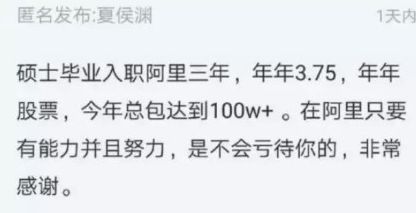 前两天一帖子火了,阿里员工自爆毕业三年年收入超100万。更是直呼“让高学历高技能年轻人先富起来”。惹得各大互联网公司群争相讨论: