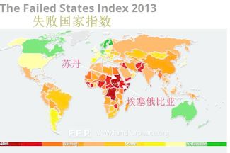 我们来看一些实例。苏丹曾是非洲第一大国,也是非洲最穷的国家。由于内战,苏丹(主要是阿拉伯民族)与南苏丹(主要是尼格罗黑人)战火不断,人均GDP一度跌至111美元(联合国最贫困的标准也是365美元,还是人均收入)。被联合国宣布为世界最不发达国家之一。曾被失败国家指数列表评为“世界上最不安定的国家”,那张最著名的饥荒照片就是摄于苏丹内战时期。