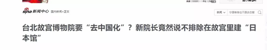 如今,随着台湾行政机构改组,新任故宫博物院院长陈其南在与媒体茶叙时又表示,上任后的重要任务是让故宫典藏文物和台湾文化产生“连结”,让故宫成为“台湾人的故宫”。他宣称,台北故宫一直不被认为是“台湾的故宫”,而是“北京的故宫”。台北故宫的内在连结不在台湾,因此不管怎么经营,都会成为北京故宫的“飞地”。他想做的是让台北故宫“台湾化”,让它的内在连结回到台湾。