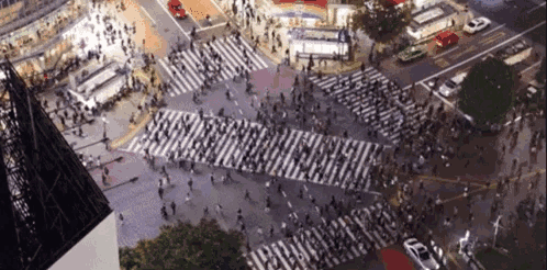 从东京涩谷车站下车后,走出车站便是一个米字型的大街路口。