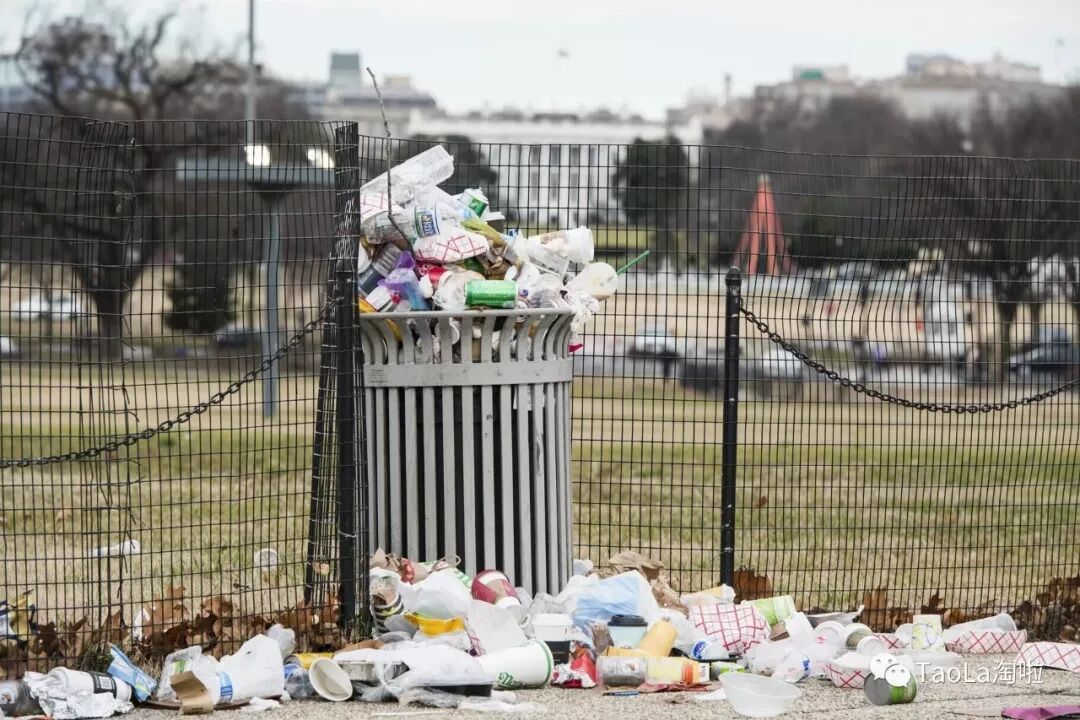 白宫对面的国家广场上,垃圾桶已经无人清理