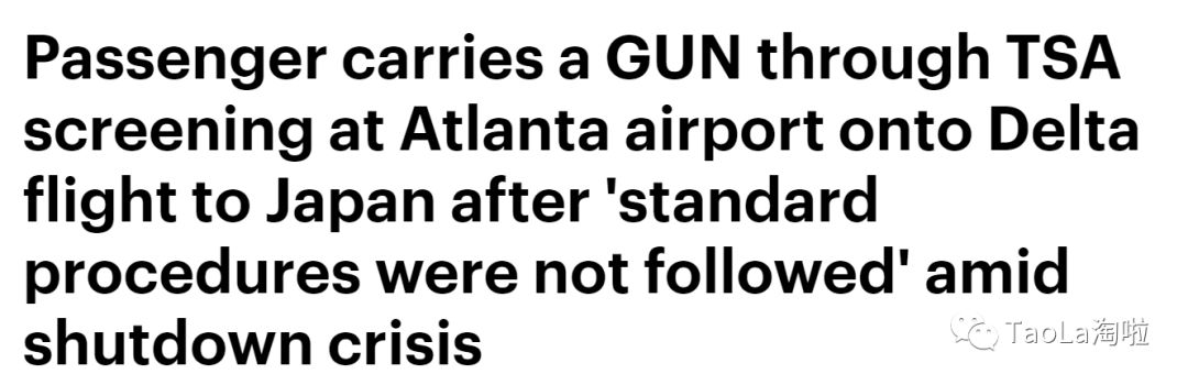 这也不是空穴来风,因为1月3日TSA人员短缺、检查疏忽,让一名乘客居然带了把枪就从亚特兰大飞到了日本!