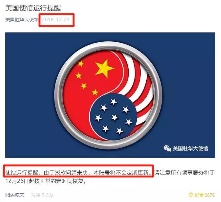 其次是政府的喉舌们,美国驻华大使馆的微信至今仍未恢复更新,最新的一次更新的消息就是“停止更新”,时间停滞在2018年12月26日……