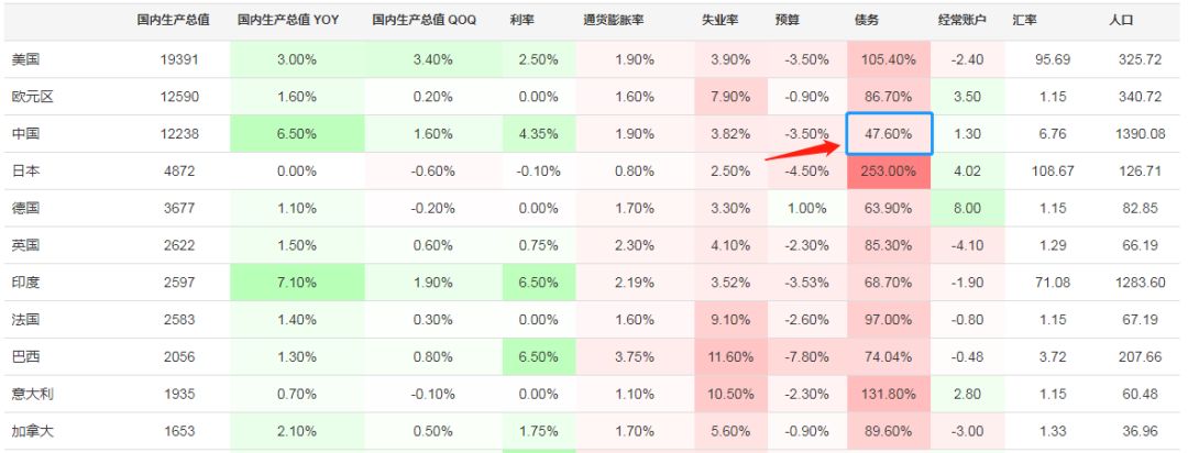 很多人也很担心我们国家增发债务会不会危险,我去查了一下各国的债务GDP比,其实国内的债务GDP比相对来说还是比较低的,所以我认为对于这个问题其实也不用太担心。