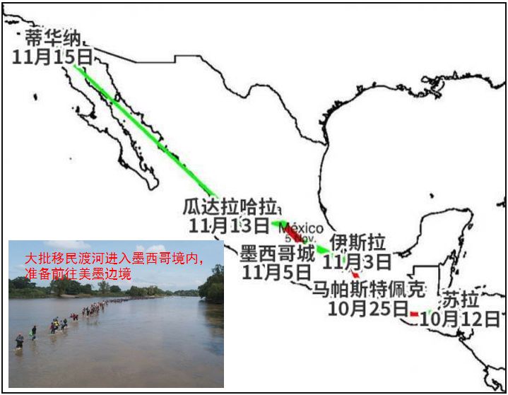 比如去年10月份,中美洲国家的有4000多的“大篷车”非法移民大军徒步北上,穿过墨西哥的边境,向美墨边境转移。