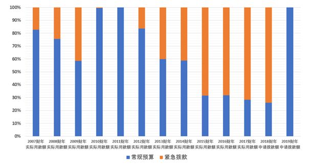 通常来讲,该账户又分做了两大板块:即“常规预算”和“紧急拨款”,顾名思义,所谓“常规预算”就是在正常周期开始前经由美国国会核准通过的拨款预算,而所谓的“紧急拨款”,则是为了应对突发形式而采取的临时加码。