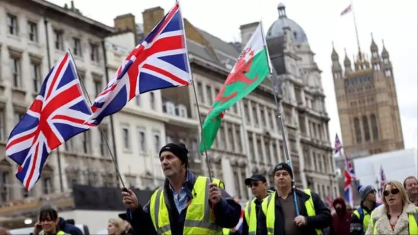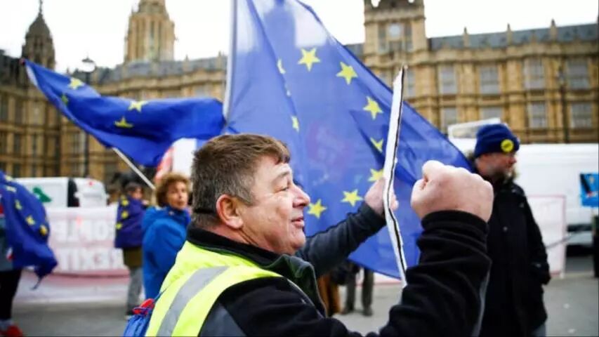 “离开就是离开”,支持退欧的抗议者在下议院外的街道上喊着类似的口号。