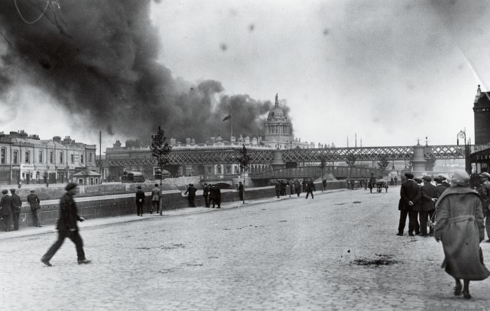 1921年5月末,爱尔兰共和军展开了建立以来最大规模的行动。他们放火焚烧了都柏林的海关大楼,那里是英国人在爱尔兰统治的中枢所在地。一百二十多名爱尔兰共和军的战士包围了这里,将正在上班的公务员驱逐了出去。