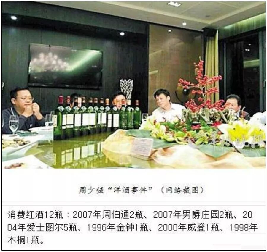 新书记也不争气,2013年,群众曝光周少强在一家豪华会所公款消费,一顿饭就喝了12瓶红酒,全是不同品种的名酒,总价七八万。