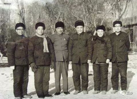 于敏 (右 二 ) 同著名核专家邓稼先 (右三 ) 、 陈能宽 ( 左二 ) 、 胡仁宇等人在核基地合影。