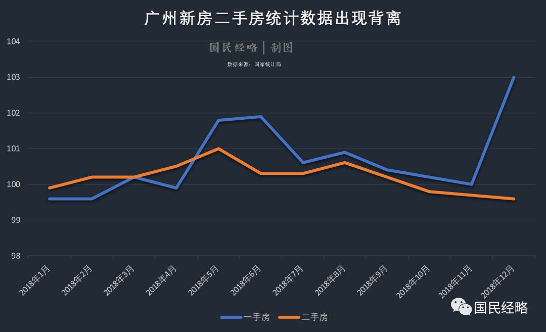 广州新房大涨3%,二手房却下跌0.4%,如此之大的背离,显然已经偏离市场真实行情。