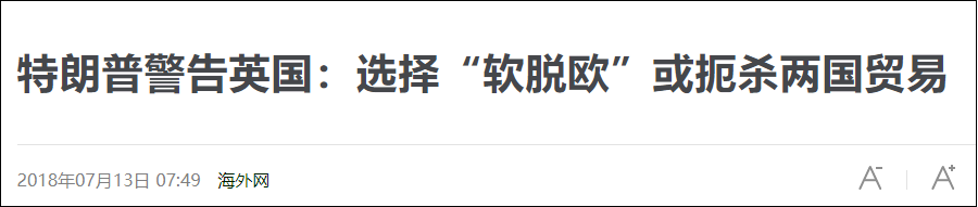 这就是特朗不断炮轰欧盟,怂恿英国硬脱欧的主要原因——特朗普多次炮轰欧盟,并称美国将与英国强化贸易关系,希望英国脱欧脱得越彻底越好,不必考虑经济负面影响。