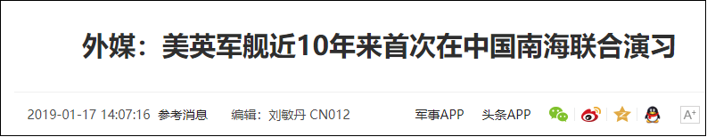 同时,还有另外一则消息:美国和英国海军16日称,两国在南海举行了首次海上联合演习。