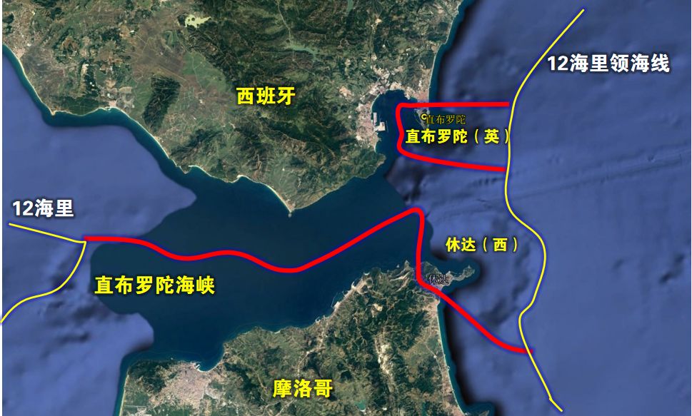 大家看下面的图,直布罗陀海峡原本是西班牙和摩洛哥各一半的(12海里以内),但是摩洛哥的这边的休达被西班牙抢走了,那么就等于整个直布罗陀海峡都要被西班牙控制。
