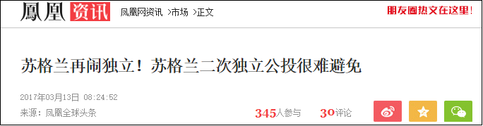 目前苏格兰正在谋划二次独立公投——英格兰领导人计划将公投日期定在2019年秋季,也正是英国政府原计划完成与欧盟谈判的时间。