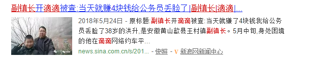 去年6月,在安徽省有一位副镇长前往县城办事时,顺路在滴滴打车上接了一单。
