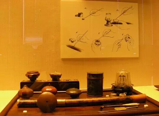 博物馆里陈列的吸食鸦片用的器具及吸食步骤(图片来自网络)