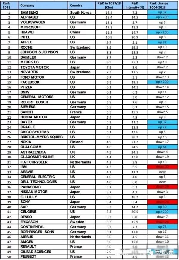这张图是由欧盟委员会对全球2500家主要公司进行的统计(部分截图)。