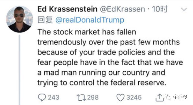 第一点,特朗普确实自信。他爱憎分明,哪怕是底下骂声一片,也不删评,也不理睬。敢弹劾我,那就股市崩盘吧。