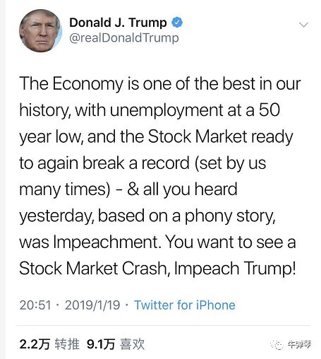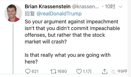 最后他得出的结论是:你们想看到股市崩盘吗,那就弹劾特朗普吧!