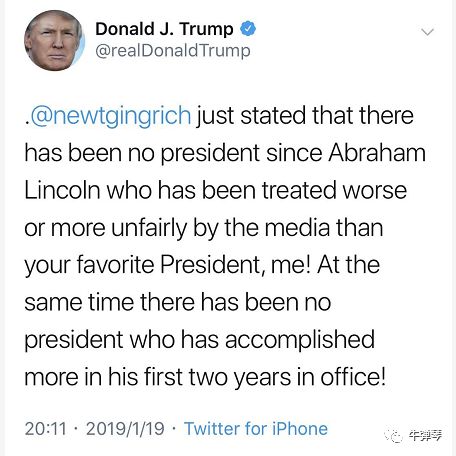 2,我是自林肯以来最不被媒体公平对待的总统,隐隐和林肯相提并论。