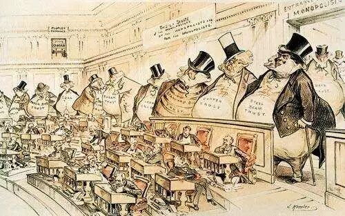 如果说建国之初,美国的新兴资产阶级还只能算是“小不点”,那么百余年后,不断发展壮大的他们已然变成了真正的“怪物”,而这个“怪物”的名字,就叫……托拉斯!(英文trust的音译,垄断组织的高级形式之一)