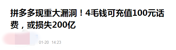 目前,很多媒体(传统媒体、新媒体)都在引用一个数字:200亿,据说拼多多因为这次漏洞被“薅”去200亿。
