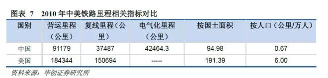 虽然我国基建技术广泛得到认可,但我国的铁路通车里程,仍低于美国。根据中国铁路总公司数据,2016年年底,中国铁路营业总里程是12.4万公里,这一数据是低于美国2010年的数据的。