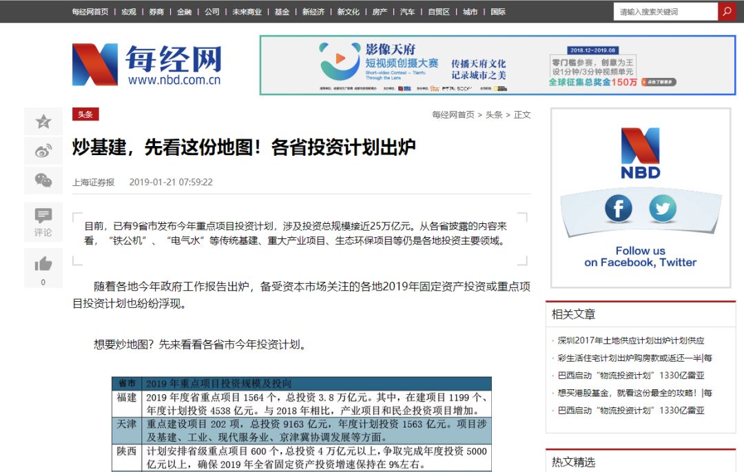 2019年,加大基建力度来补齐各地短板的发展方式,也初露锋芒。目前已有9个省份的政府公报中,明确了2019年的基建投资发展方向,而且可以预计的是,加入到“大基建”这一行列的省份只会越来越多。