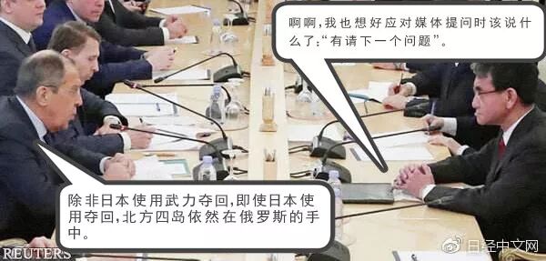 果不其然,在与河野太郎见面后,俄罗斯外长拉夫罗夫,很快便狠狠扇了日本一顿耳光。而我们亦由此知晓了安倍到底想跟普京谈些什么。