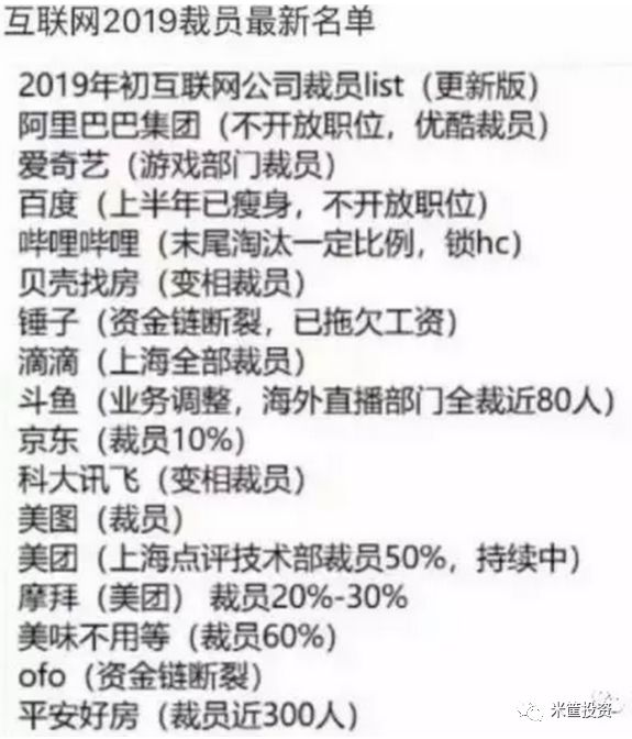 所以,我们就用优化员工好了。实体行业的优化程度就不用我说了。连行业薪酬排名第一的互联网也是风声鹤唳。