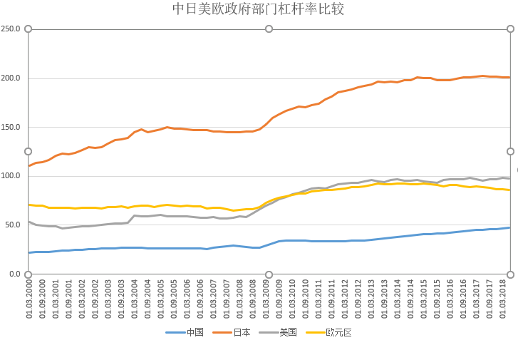 那么,唯独可以依靠的就是政府杠杆率了。在全球四大经济体中,也就政府杠杆率中国目前还处在低位。
