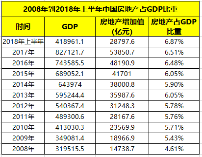 2018年上半年房地产占GDP的比重是6.87%,下半年预计差不多也是这个数,那我们来推到一下房地产为GDP贡献了多少:90万亿*6.8%=6.12万亿。