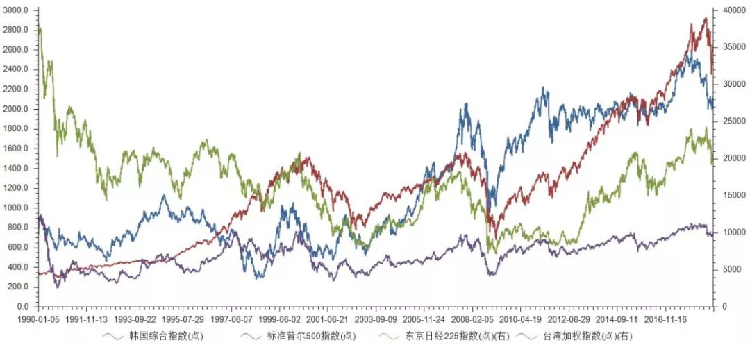 资本市场不断开放,境外资金持续流入,导致本国股市与国际股市的联动性明显增强。90年代日本股市泡沫破灭,调整了几年,韩国和台湾股市早期也波动性极大,基本不跟美股同步。随着外资的不断流入,尤其是2000年以后,各地股市关联性加强,基本跟随美股走牛走熊。