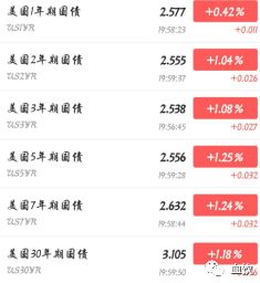 华尔街见闻数据显示,1月17号夜间,美国一年期国债收益率达到2.577%,而美国两年期、三年期、五年期国债收益率分别为2.555%、2.538%、2.556%,七年期、十年期国债收益率则分别为2.632和2.720%。