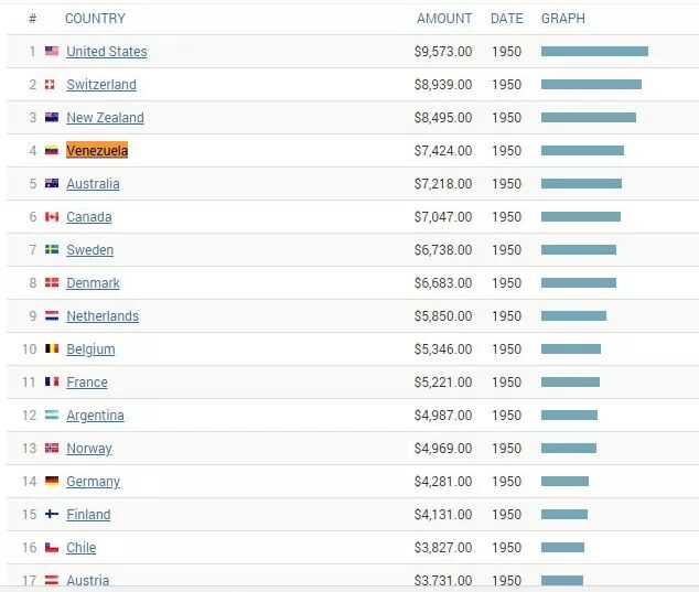 在大众认知中,可能认为沙特产富豪,殊不知,在几十年前,委内瑞拉也是全球发达国家之一,人均收入排在全球第4。