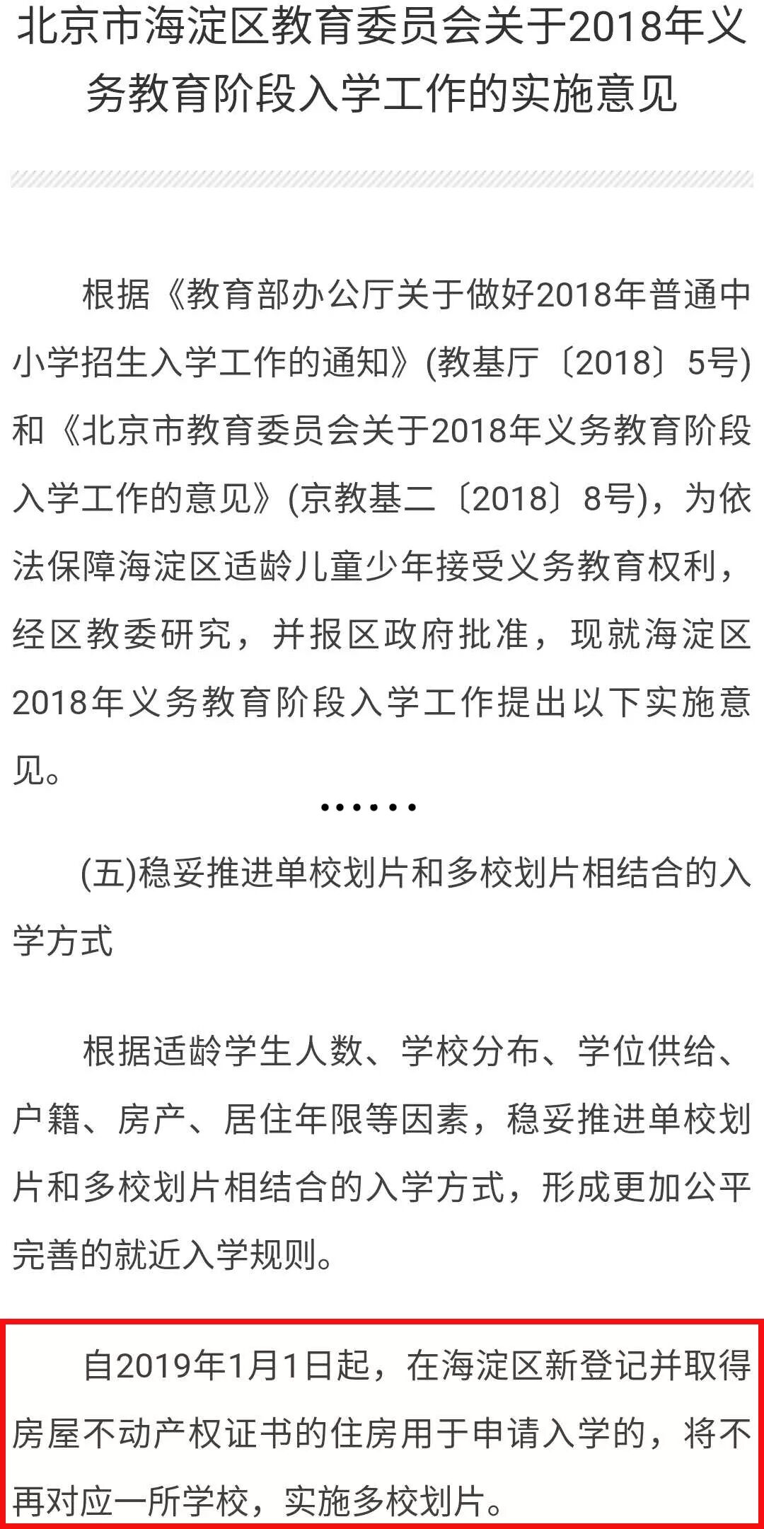 之前其他地区也出台过各种抑制学区房炒作的政策,比如要求若干年内只有一个入学名额,但都治标不治本,真正对学区房热潮的釜底抽薪之际,就是从单校划片变成多校划片。
