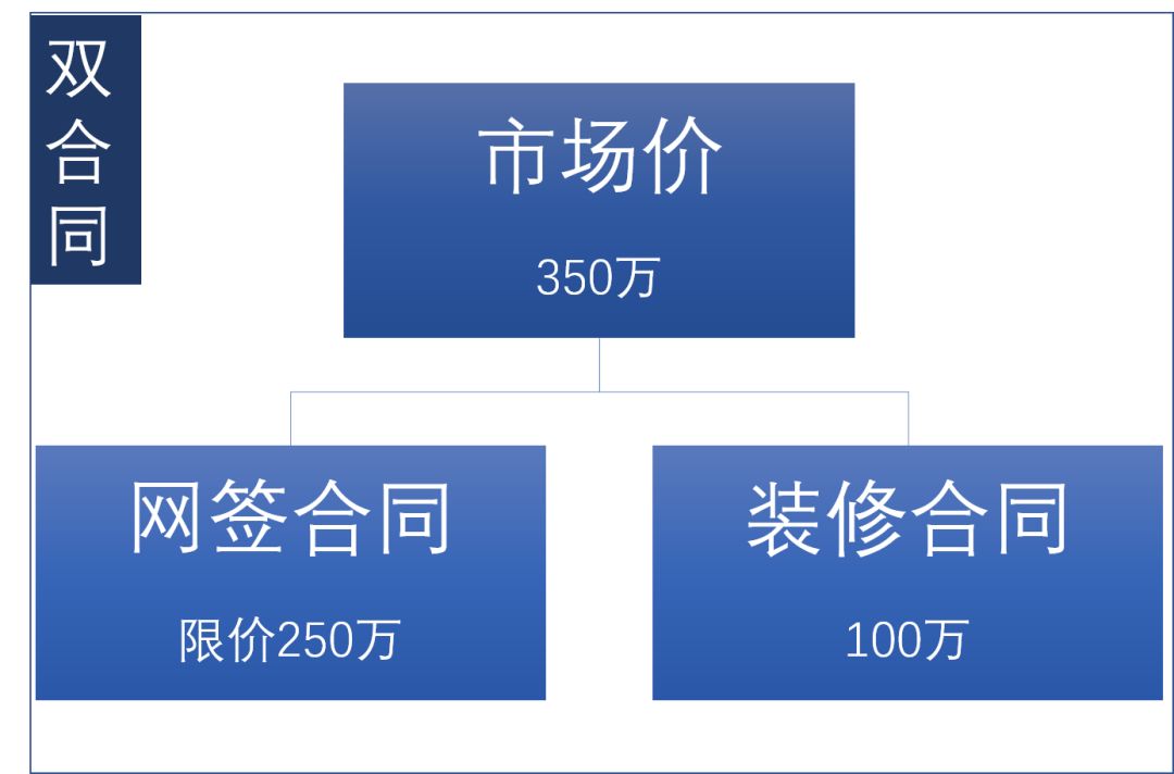 举个例子,一套市场价350万的房子,按照限价政策限制,网签合同只能签到250万,另外100万价差怎么办?