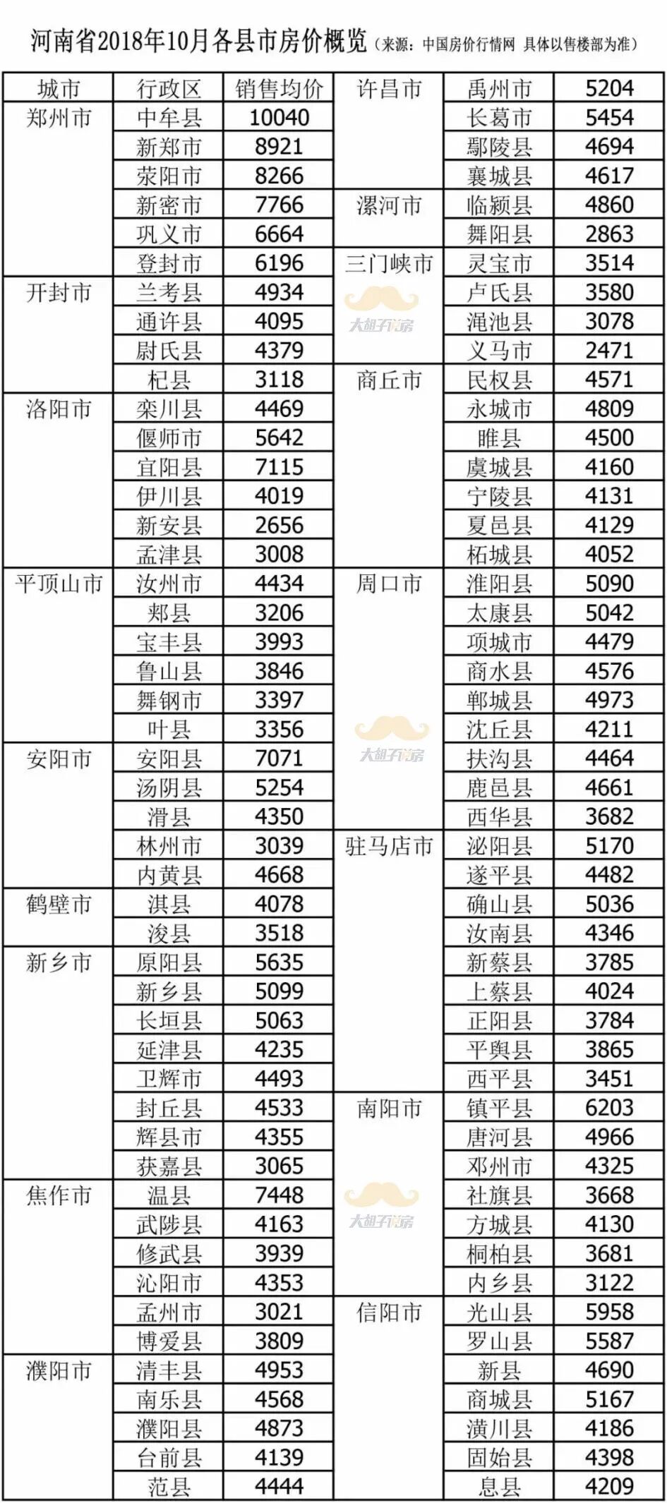 而绝大多数返乡置业,并不是在三四线置业,而是在三四线城市下辖的县城甚至乡镇。县城的房价有多恐怖?我给大家看一张外出务工大省,河南全境县城的房价表。